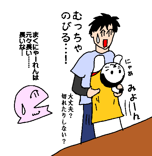 ![]() ネコは伸びるものですよ。 ・・・・長いな・・・ |
