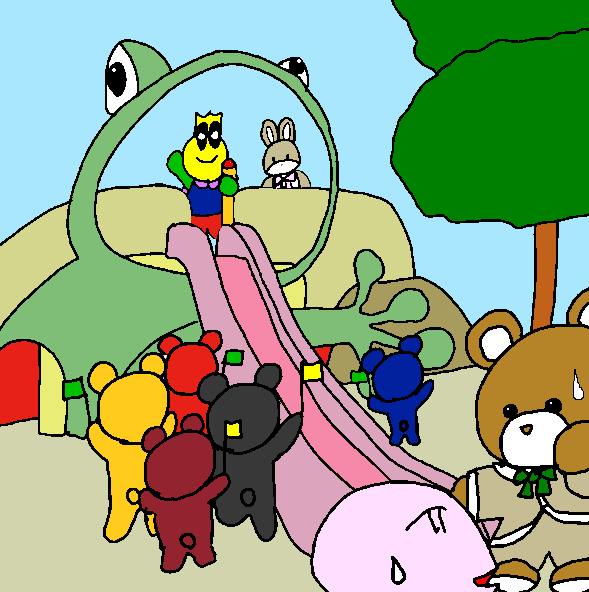 ![]() 「プチクマお菓子の家へようこそ!!」 大歓迎を受けるぼんと宇宙人。 なんでそんな人気のないところに作ったんだ… |